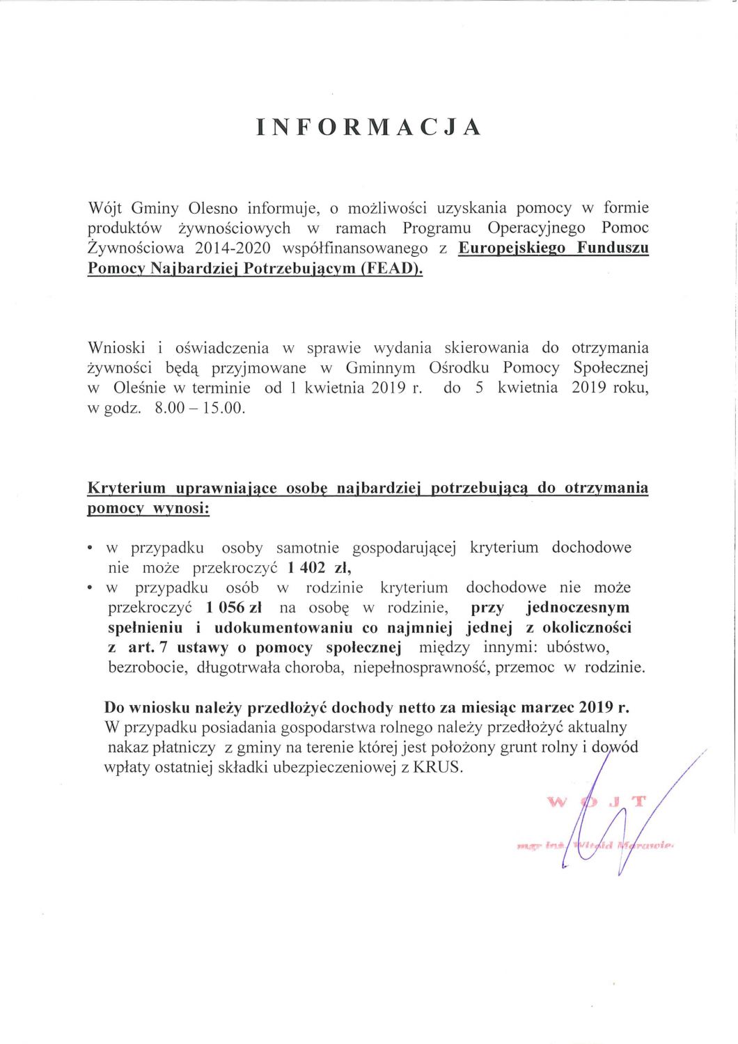 INFORMACJA GOPSu – produkty żywnościowe
