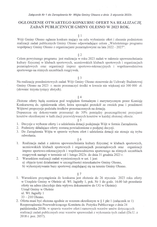 OGŁOSZENIE OTWARTEGO KONKURSU OFERT NA REALIZACJĘ ZADAŃ PUBLICZNYCH GMINY OLESNO W 2023 ROK.