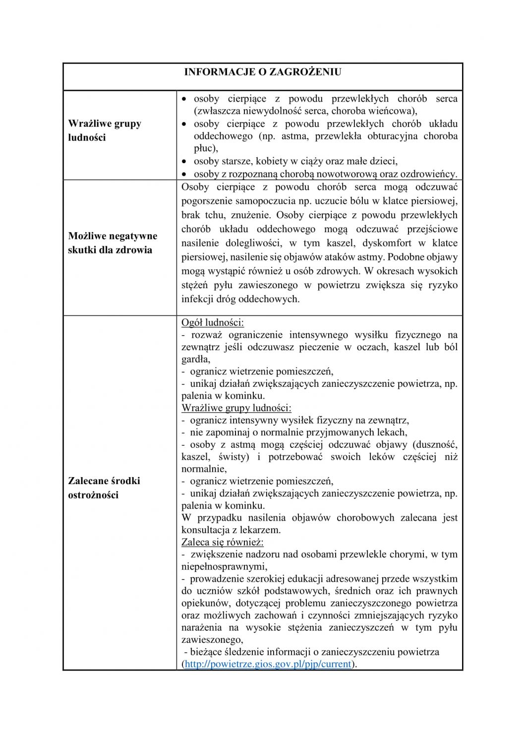 (dzieci i młodzież, osoby starsze i w podeszłym wieku, osoby z zaburzeniami układu oddechowego lub krwionośnego, osoby zawodowo narażone na zapylenie oraz osoby palące papierosy i bierni palacze)