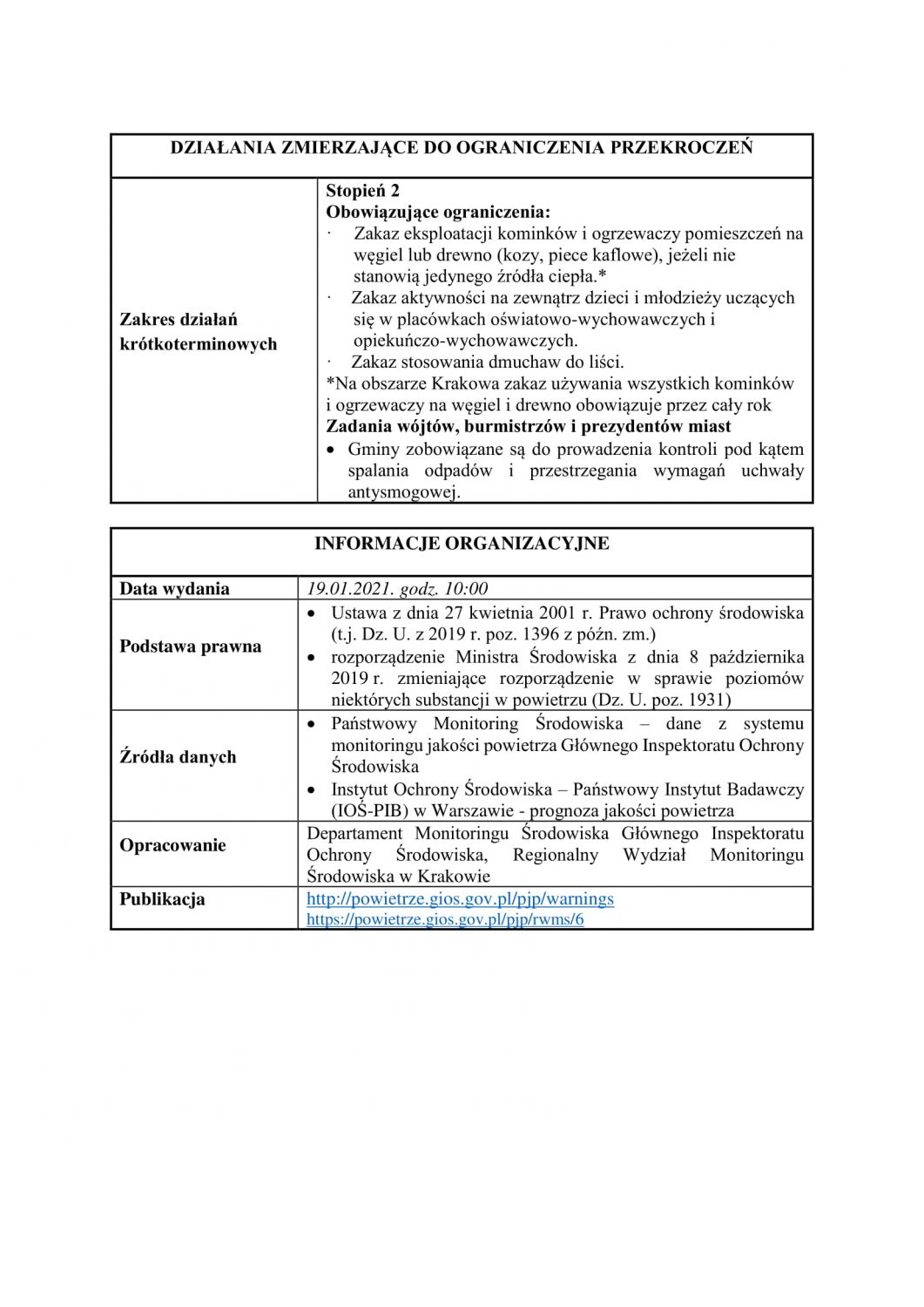 Obowiązuje w dniu 19.01.2021 od godz. 06.00 do 24.00
