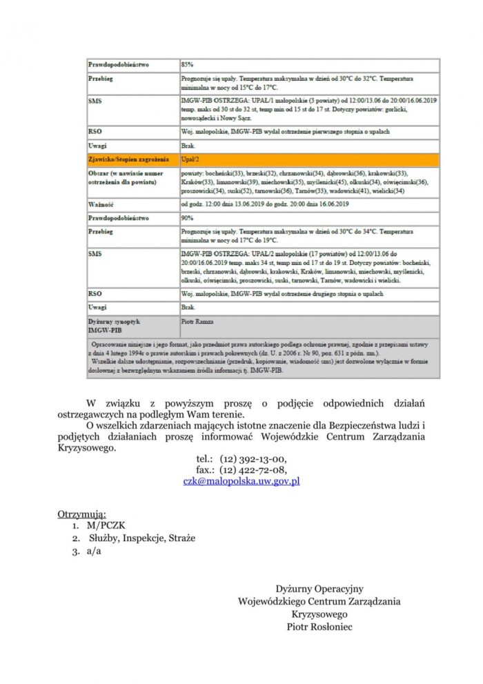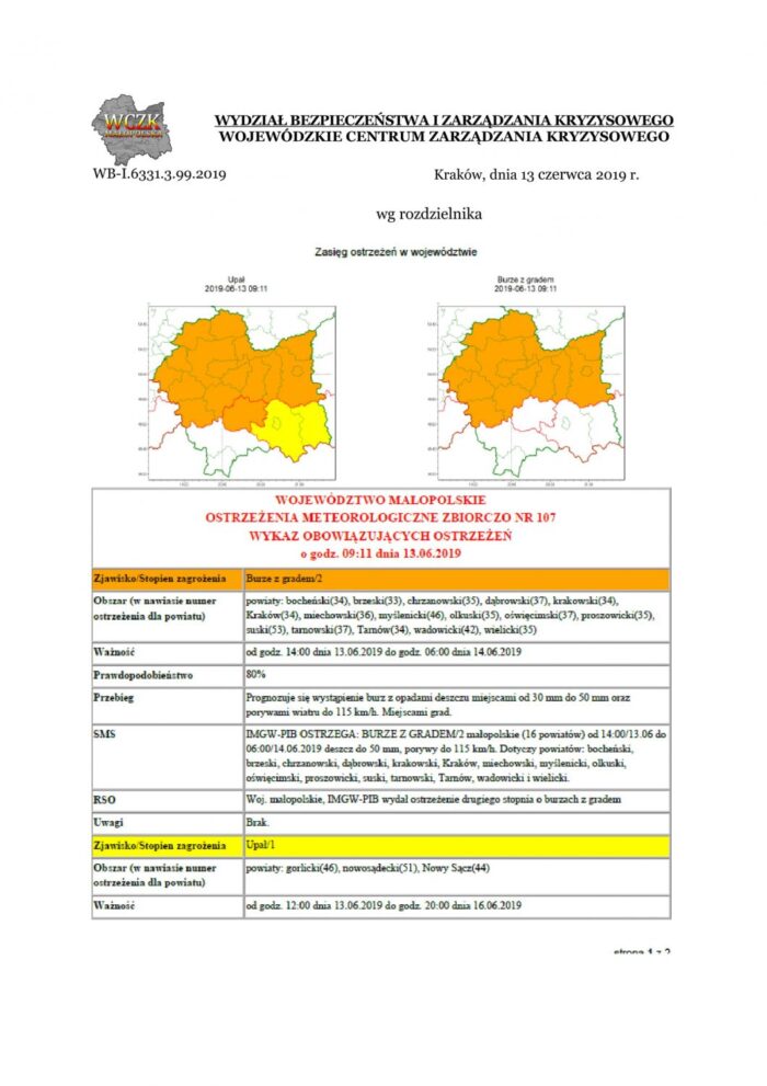 Ostrzeżenie meteorologiczne nr 107