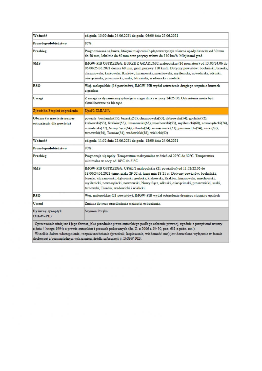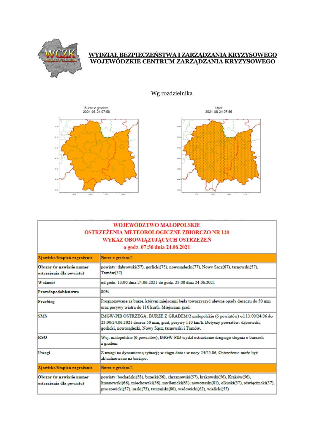 Ostrzeżenie meteorologiczne nr 120/2021