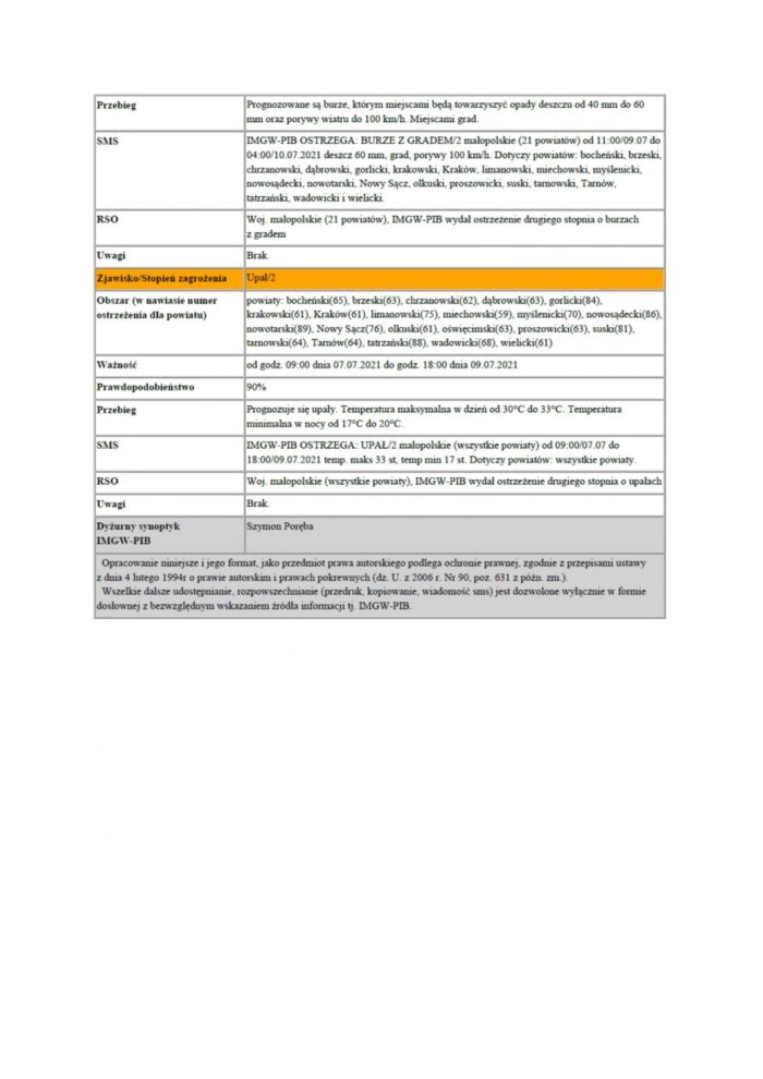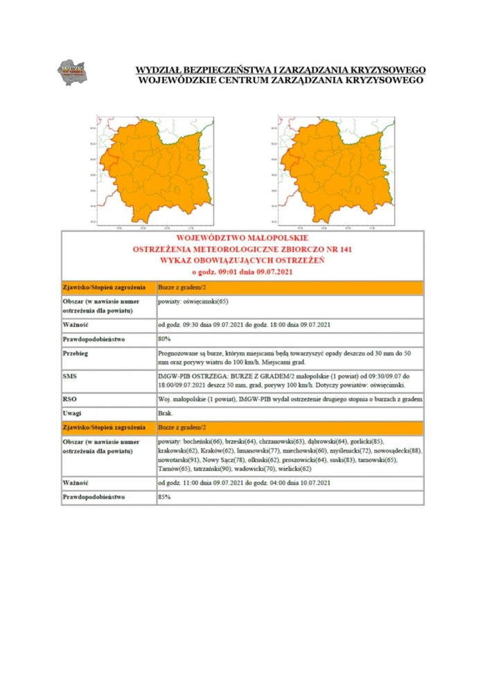 Ostrzeżenie meteorologiczne nr 141/2021 r.