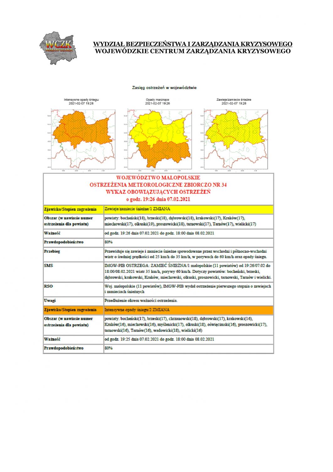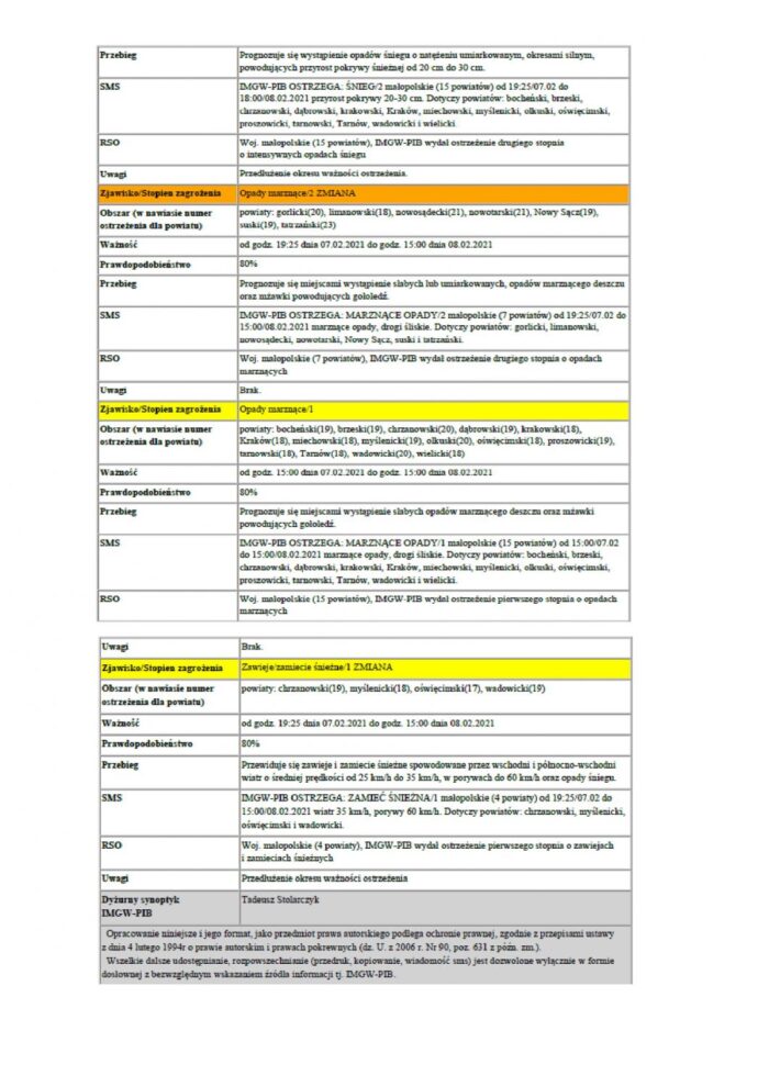 Ostrzeżenie meteorologiczne Nr 34/2021