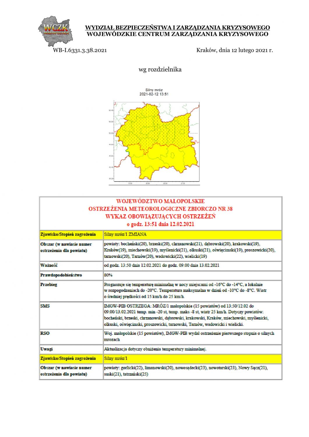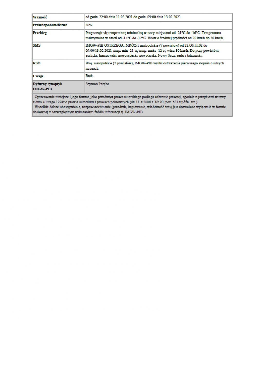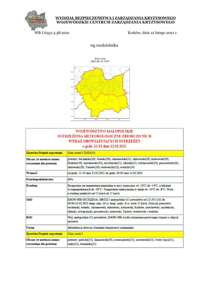 Ostrzeżenie meteorologiczne nr 38/2021