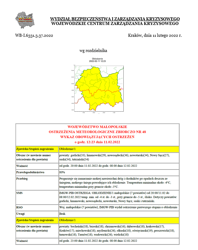 Ostrzeżenie meteorologiczne nr 48/2022