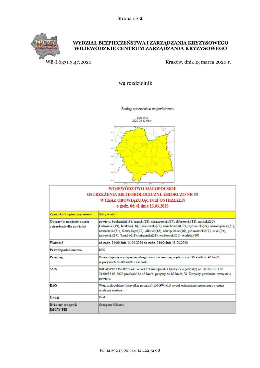 Ostrzeżenie meteorologiczne nr 53