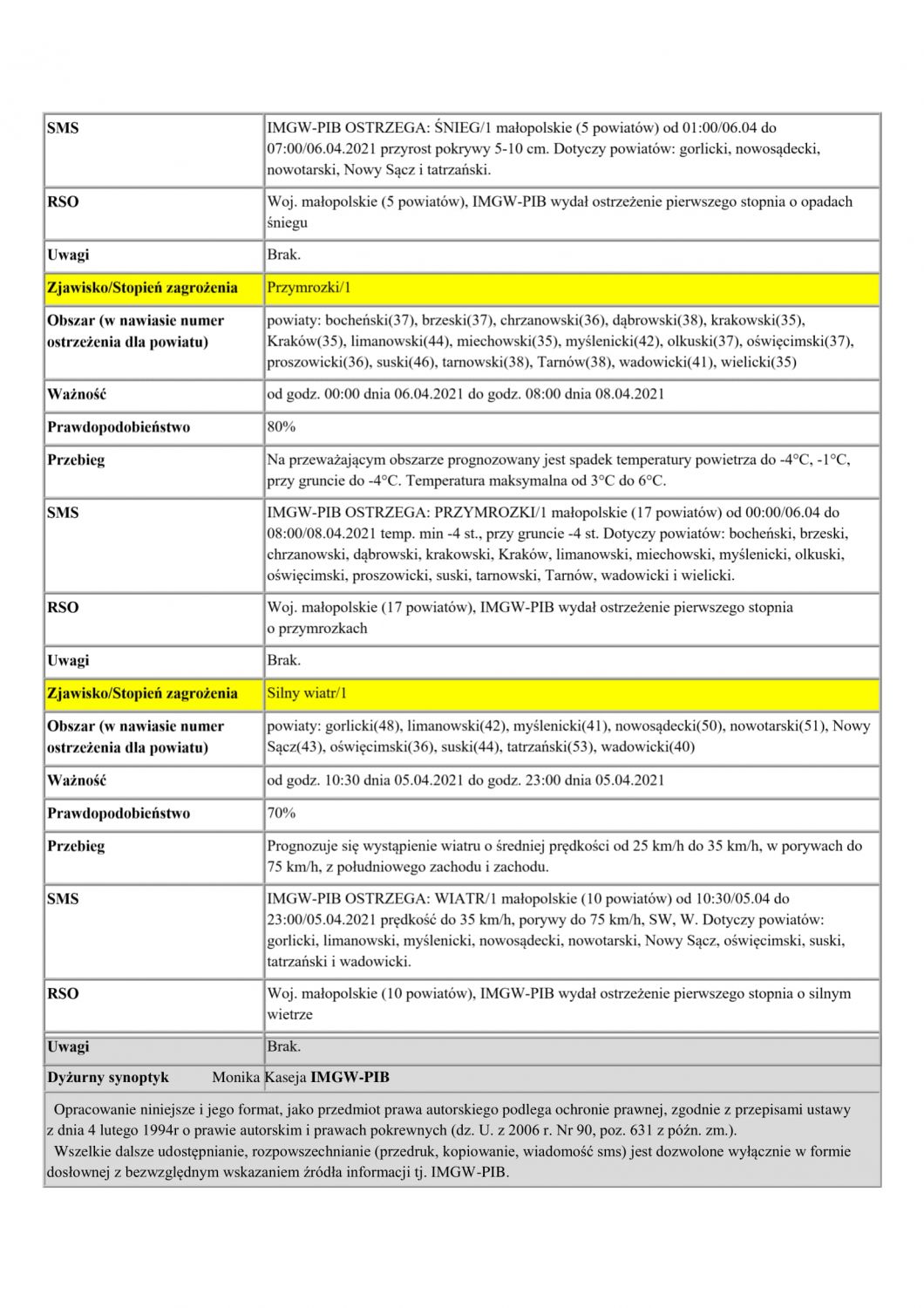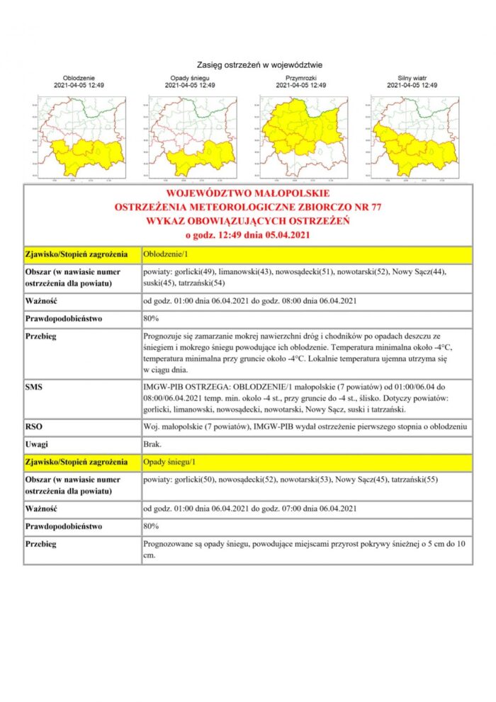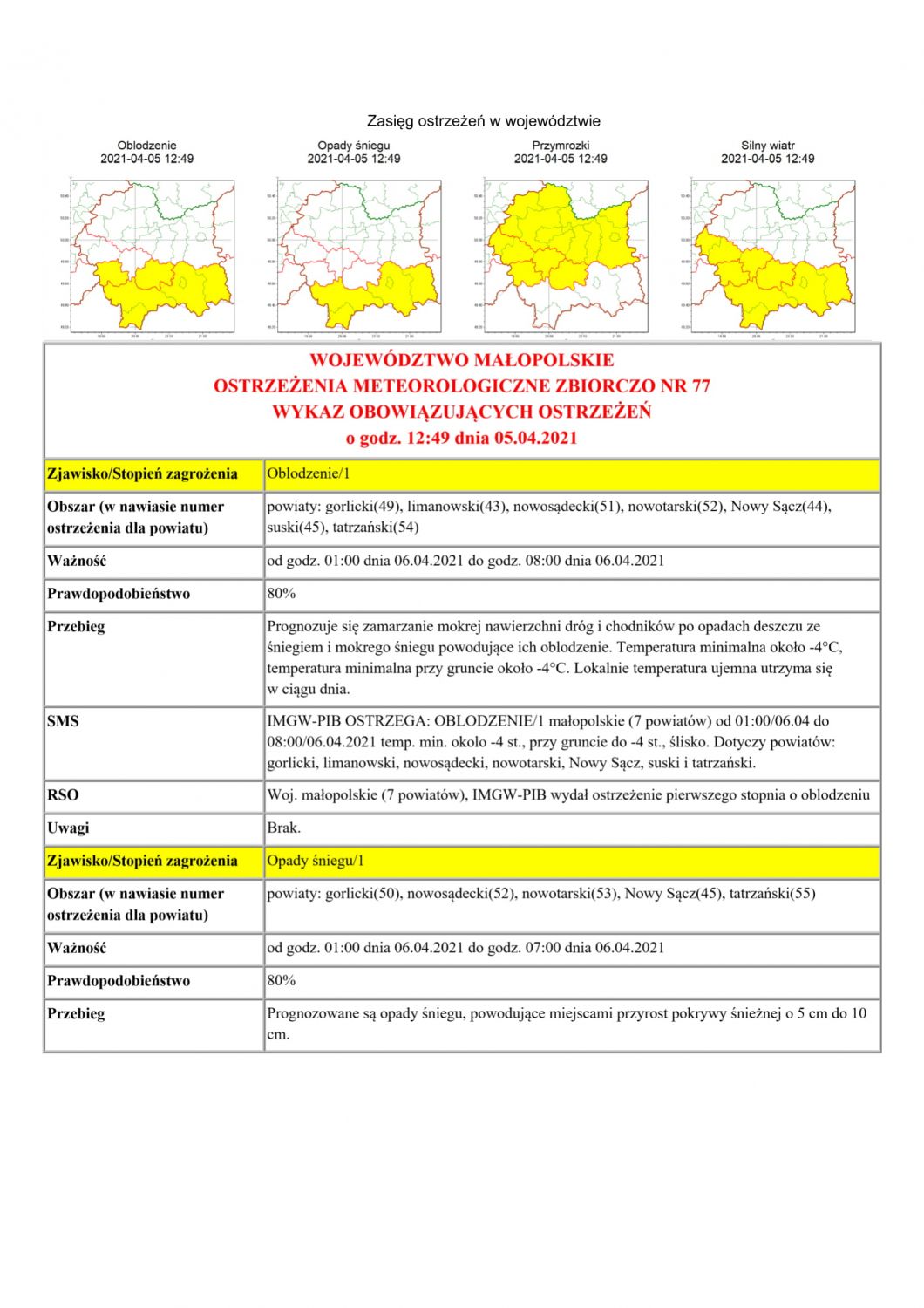 Ostrzeżenie meteorologiczne nr 77/2021 r.