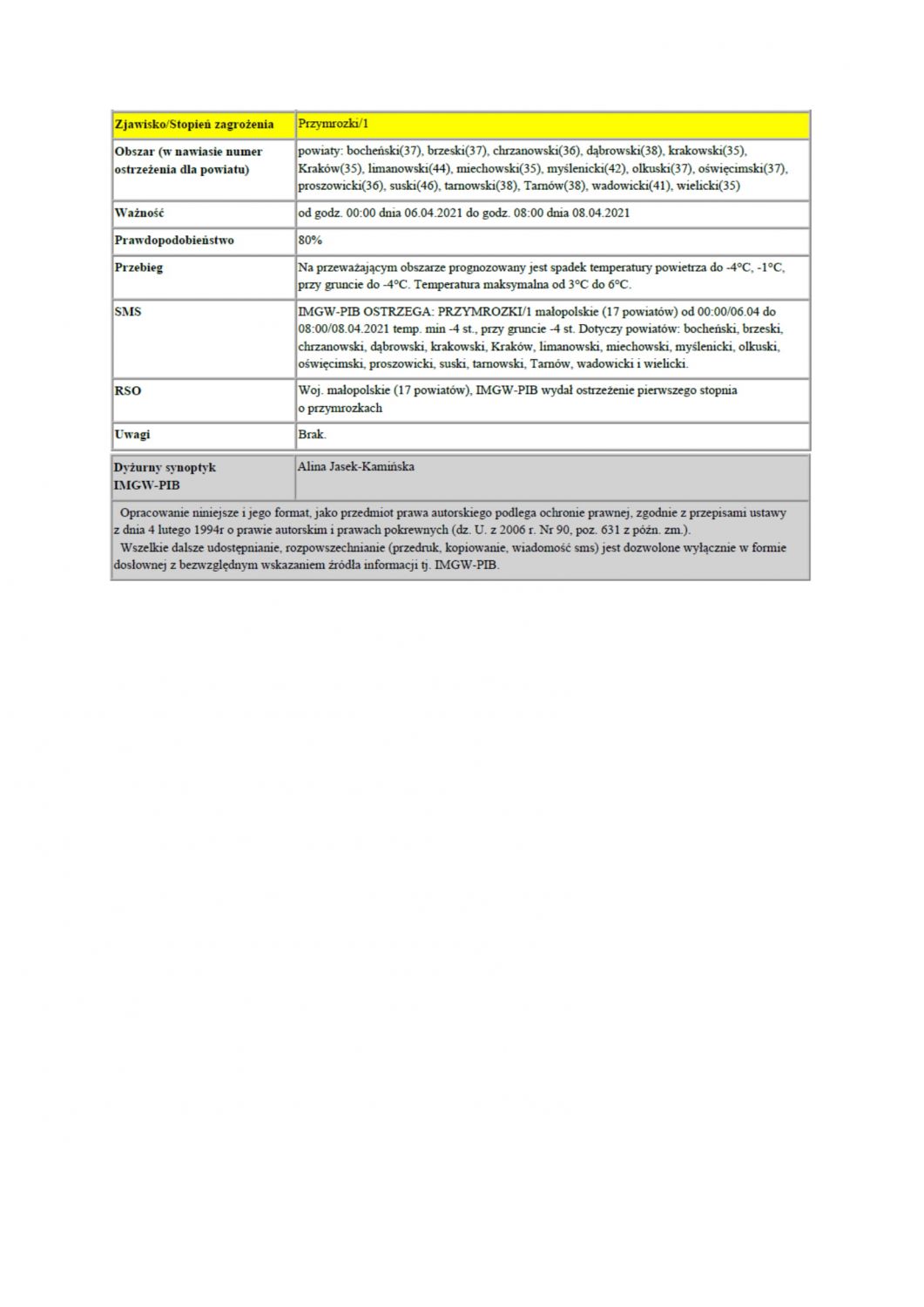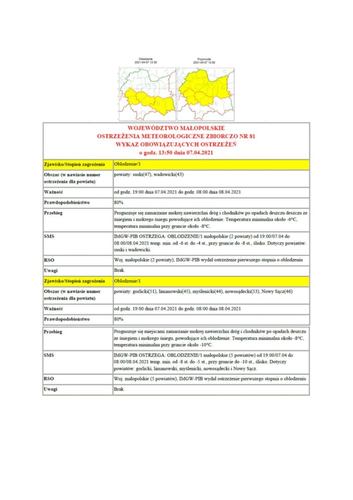Ostrzeżenie meteorologiczne nr 81/2021 r.