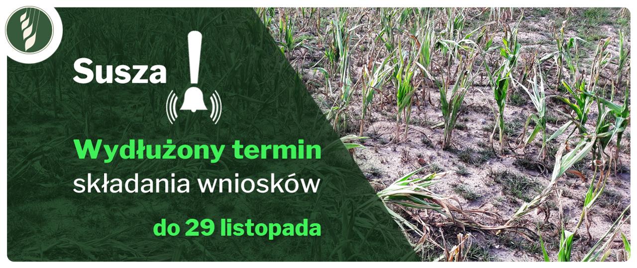 Minister Rolnictwa i Rozwoju Wsi informuje, że termin składania – przez producentów rolnych, w których gospodarstwach rolnych szkody w uprawach rolnych spowodowane wystąpieniem w 2019 r. suszy, huraganu, gradu, deszczu nawalnego, przymrozków wiosennych lub powodzi, w rozumieniu przepisów o ubezpieczeniach upraw rolnych i zwierząt gospodarskich, powstałe na powierzchni uprawy objęły co najmniej 30% danej uprawy – wniosków o udzielenie pomocy w formie dotacji zostaje wydłużony.