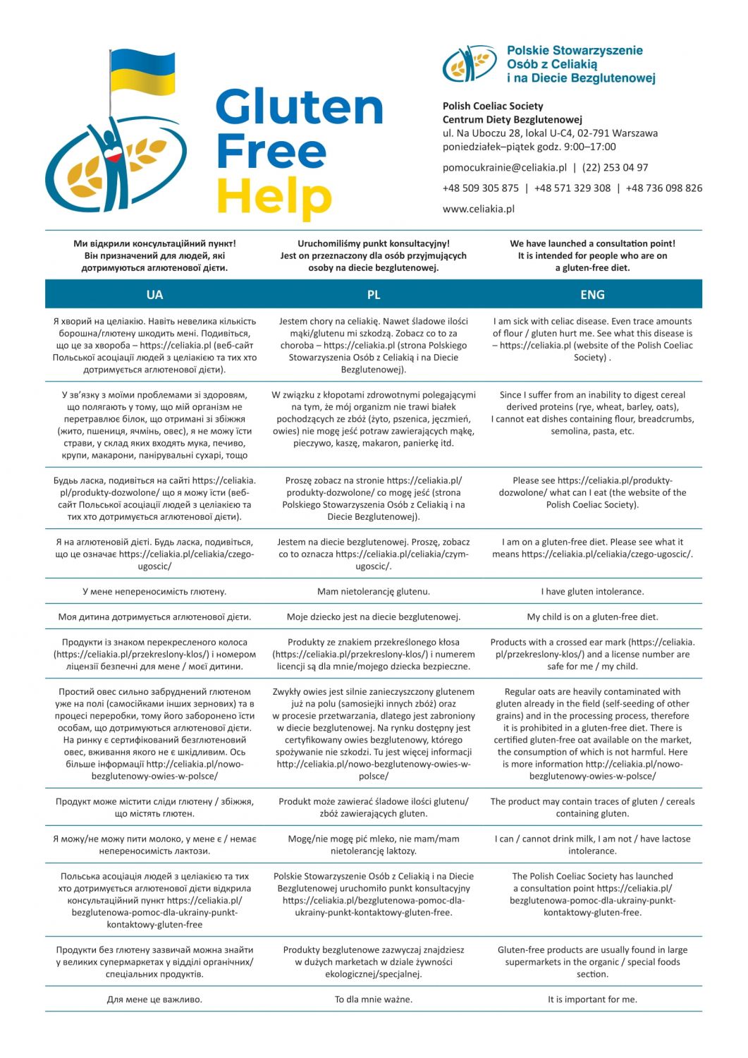 Pomoc uchodźcom – Informacja dla osób przyjmujących osoby na diecie bezglutenowej