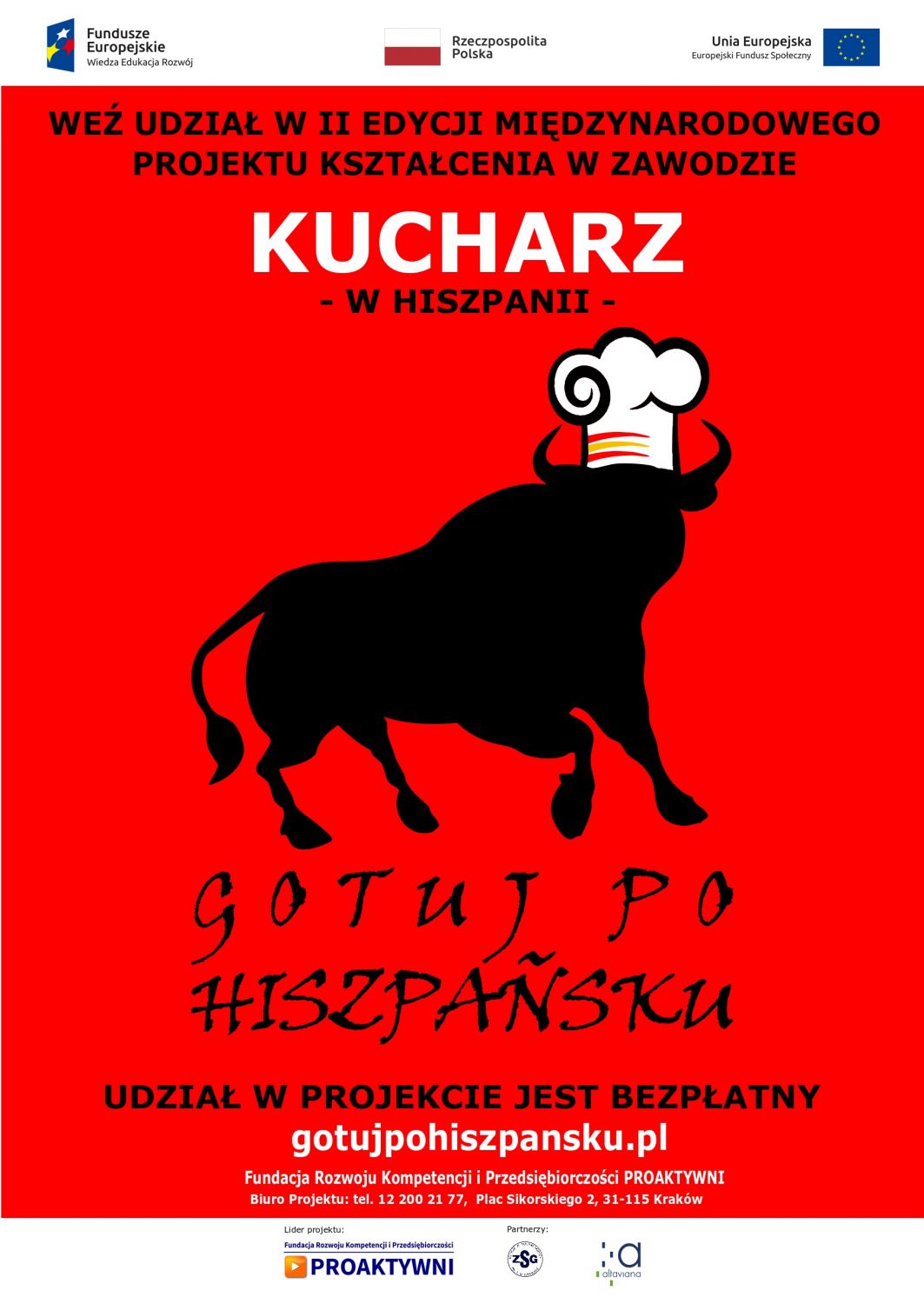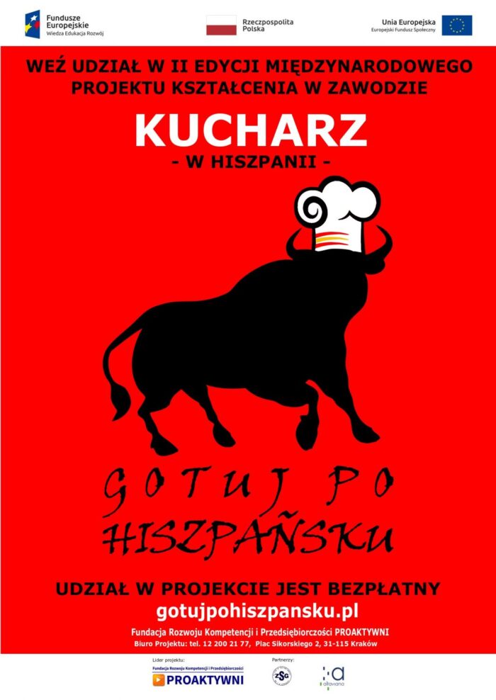 [nbsp]Projekt jest realizowany przez Fundację Rozwoju Kompetencji i Przedsiębiorczości PROAKTYWNI[nbsp] w partnerstwie z Zespołem Szkół Gastronomicznych w Krakowie i jest współfinansowany przez Unię Europejską ze środków Europejskiego Funduszu Społecznego.