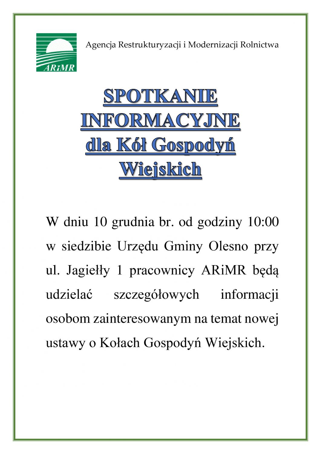 Spotkanie informacyjne dla Kół Gospodyń Wiejskich