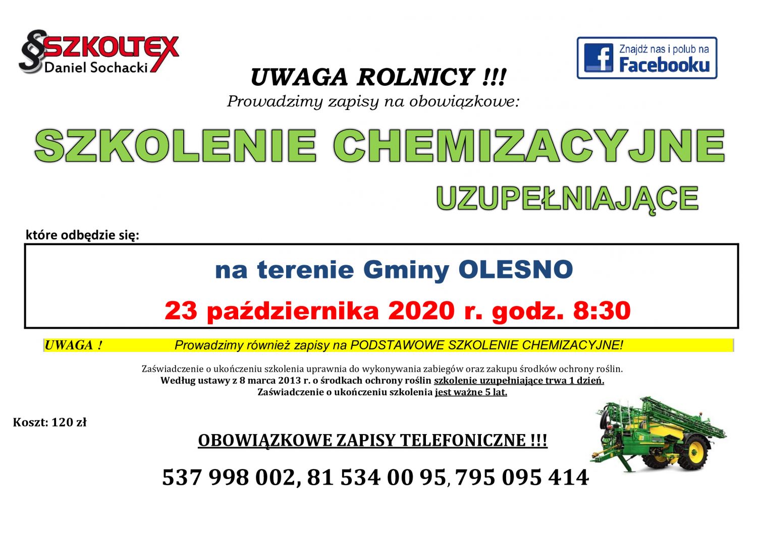 UWAGA ROLNICY -SZKOLENIE CHEMIZACYJNE UZUPEŁNIAJĄCE