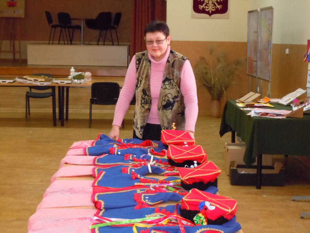 [nbsp][nbsp][nbsp][nbsp][nbsp][nbsp][nbsp][nbsp][nbsp][nbsp][nbsp] Pomysł Pani Zofii Pilas zatytułowany został „Tradycyjny strój regionalny – podstawy wykonania stroju dąbrowskiego dla dziewczynek i chłopców”. Pomysł ten zakładał uszycie[nbsp][nbsp][nbsp][nbsp][nbsp][nbsp][nbsp][nbsp][nbsp][nbsp][nbsp][nbsp] i wyhaftowanie strojów dąbrowskich – 4 dla dziewczynek i 4 dla chłopców. Wykonane stroje miały następnie zostać przekazane do Przedszkola Publicznego w Oleśnie, by służyć przez długie lata kolejnym pokoleniom dzieci z terenu Gminy Olesno. Pierwsze kroki zmierzające do realizacji projektu podjęto w październiku 2014 r. Podczas działań planistycznych przewidziano 8 spotkań, w ramach których przeprowadzono warsztaty szkoleniowe oraz spotkania, podczas których szyto i haftowano stroje dąbrowskie. Spotkania te odbywały się w świetlicy Urzędu Gminy w Oleśnie w dniach: 18.11., 19.11, 25.11., 26.11, 2.12, 3.12, 9.12, 10.12, 16.12., 19.12.2014 r. W realizacji projektu wzięło udział szerokie grono seniorów oraz młodzieży z terenu Gminy Olesno, którzy aktywnie włączyli się w pracę w trakcie warsztatów. Do udziału w projekcie zaproszono także dzieci z Przedszkola Publicznego w Oleśnie, które m.in. wykonywały prace plastyczne o tematyce strojów dąbrowskich. Seniorzy oraz młodzież uczestniczący w warsztatach mieli okazję poznać zasady wykonania strojów dąbrowskich. Warsztaty te były także szansą na podzielenie się doświadczeniami z młodszym pokoleniem oraz integrację społeczności lokalnej. Podczas ostatniego spotkania, które miało miejsce 19 grudnia 2014 r., odbyło się uroczyste zakończenie realizacji warsztatów i przekazanie strojów dąbrowskich do Przedszkola Publicznego w Oleśnie. Z tej okazji przygotowano niezwykłe przedstawienie z udziałem przedszkolaków, które wystąpiły w strojach wykonanych [nbsp][nbsp][nbsp][nbsp][nbsp][nbsp][nbsp][nbsp][nbsp][nbsp][nbsp][nbsp][nbsp][nbsp][nbsp][nbsp][nbsp][nbsp][nbsp][nbsp][nbsp][nbsp][nbsp][nbsp][nbsp][nbsp]w ramach warsztatów. Na przedstawienie przybyło wielu gości, wśród których znaleźli się m.in. Wójt Gminy Olesno – Pan Witold Morawiec, Sekretarz Gminy Olesno – Pan Janusz Plata oraz pomysłodawczyni warsztatów – Pani Zofia Pilas wraz z paniami, które uczestniczyły w warsztatach wykonując stroje dąbrowskie.