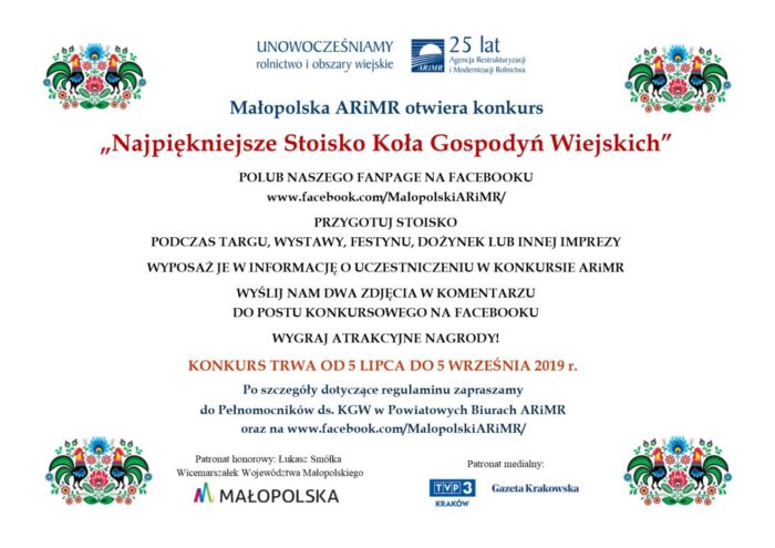 Konkurs trwa od 5 lipca do 5 września. Regulamin dostępny jest w siedzibie Małopolskiego Oddziału Regionalnego ARiMR przy ul. Promienistych 1 oraz na jego profilu na fb[nbsp]www.facebook.com/MalopolskiARiMR/.
