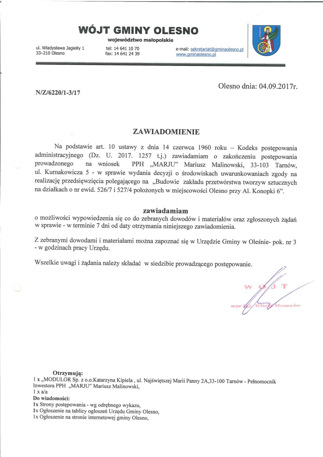Zawiadomienie przed wydaniem decyzji